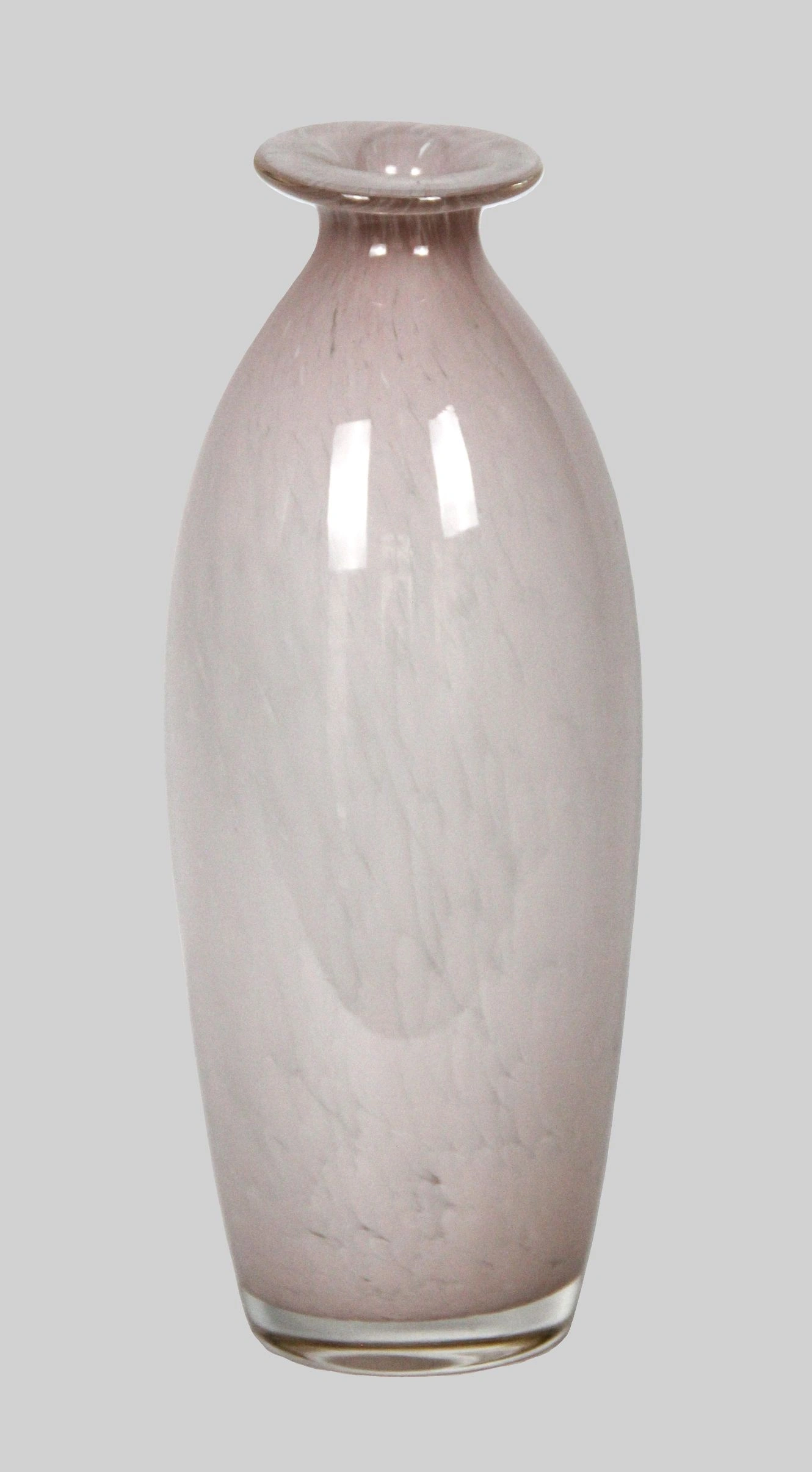 Glazen vaas, gemarmerd motief in rozig en een afgeschuinde rand.