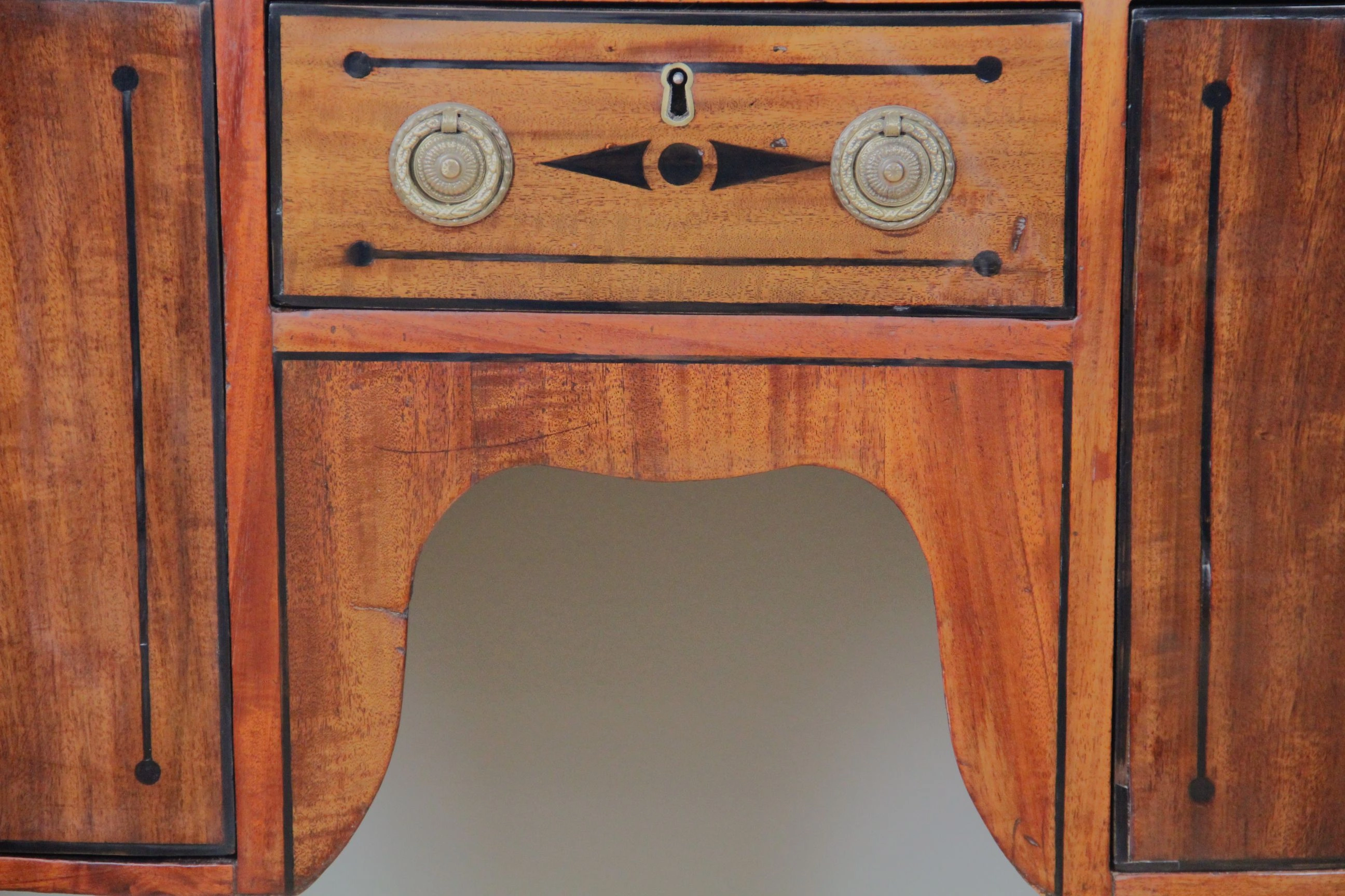 Klein formaat sideboard in mahonie met ebbenhouten inlegwerk. Handgepolitoerd.