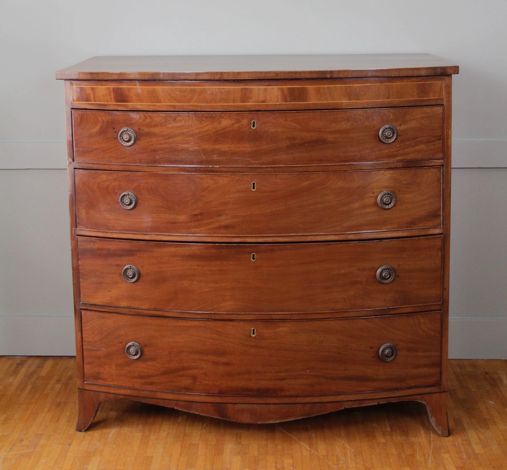 Mahoniehout met bovenaan ingelegde filet in buxushout.