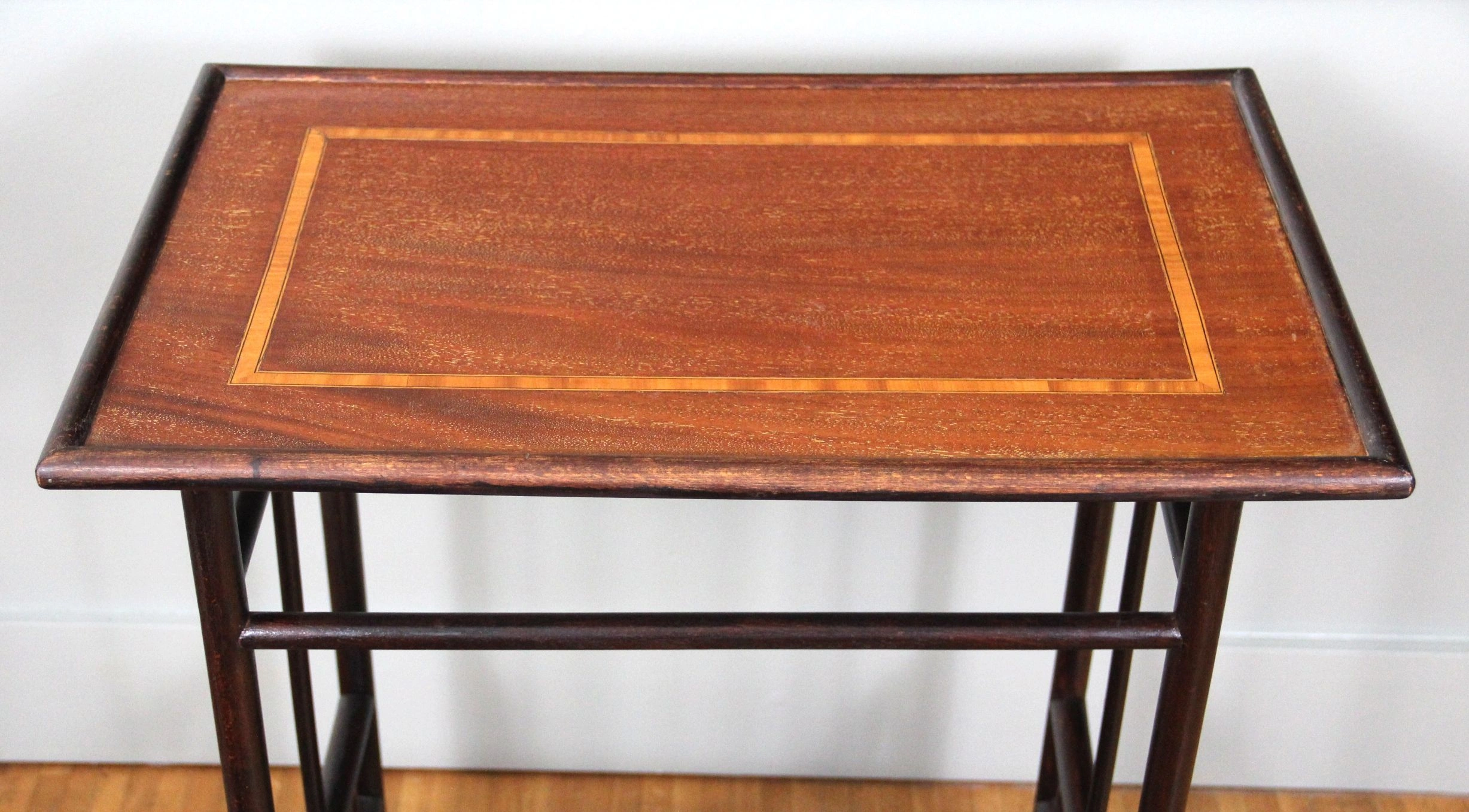 Mahoniehouten blad met satijnhout ingelegd. Beuken struktuur in mahonie getint.