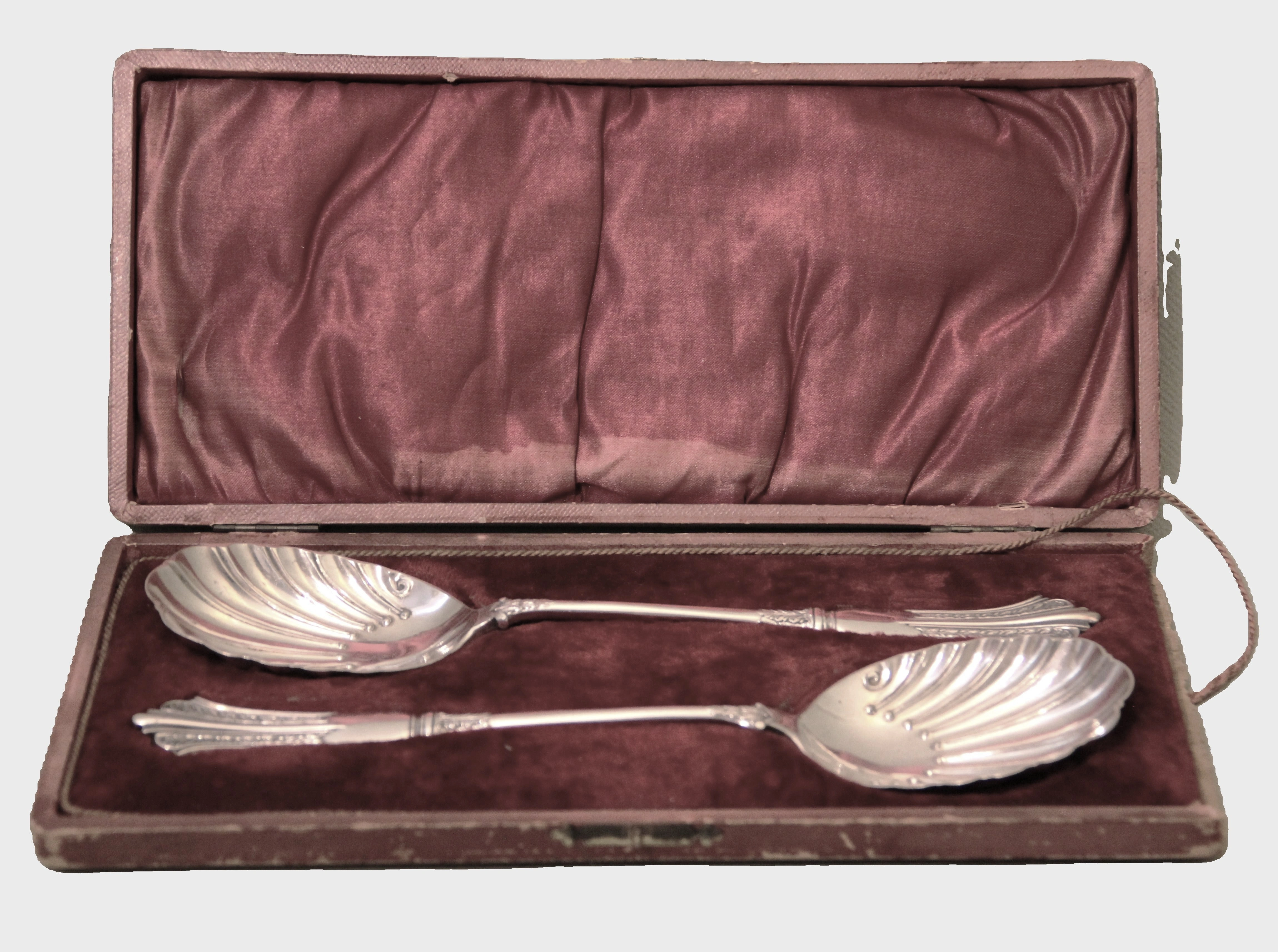 Paar verzilverde slalepels in originele doos.